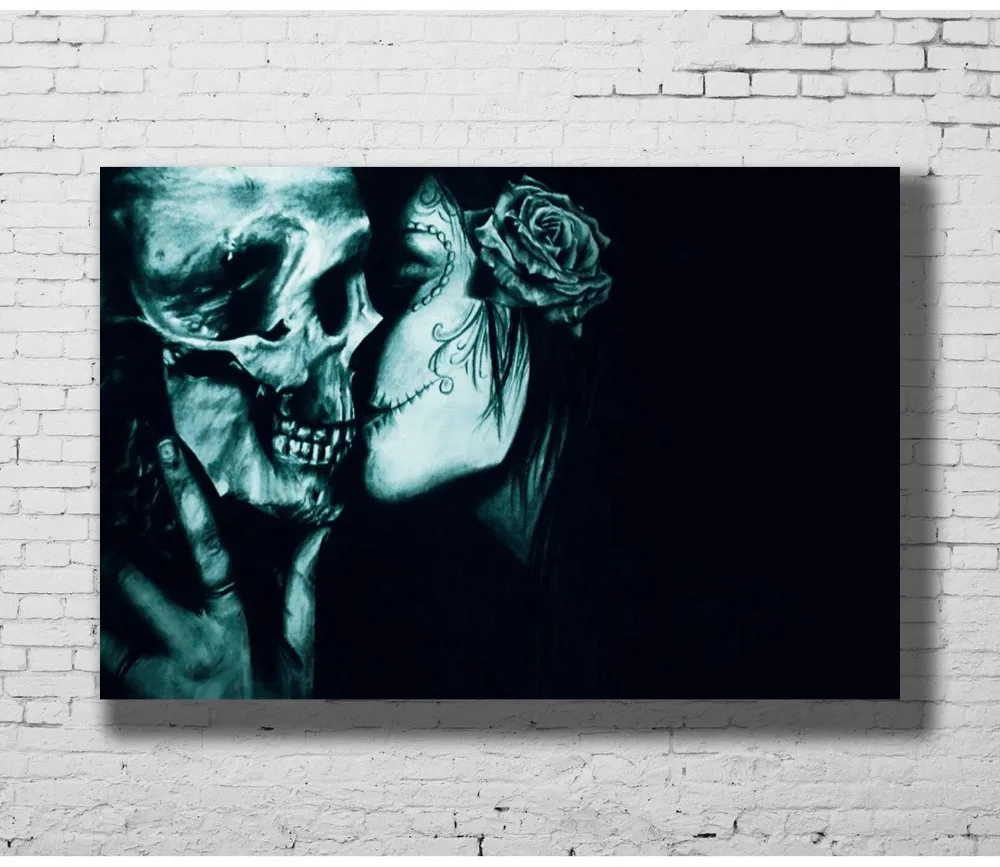 Skull Kiss Gothic Abstract Fantasy Artwork Wall Sticker Home