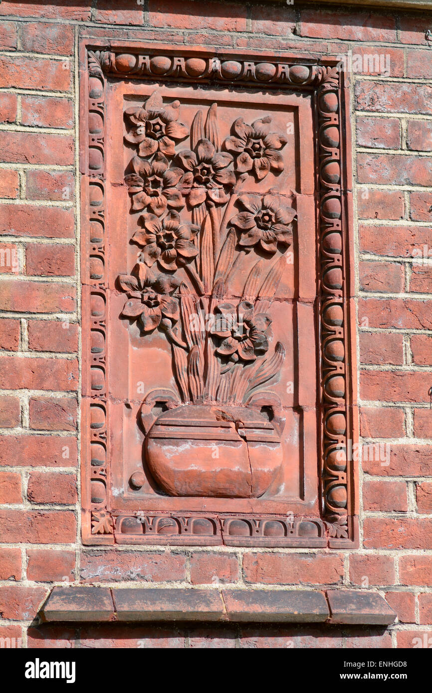 Victorian Daffodil Flower Tile Decoration On Outside Wall Of House