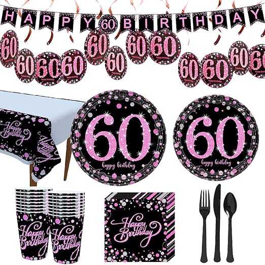 60th Birthday Party Decorations Black Gold Tableware Plates Cups