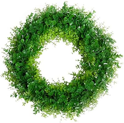 Azoco 17 Artificial Boxwood Wreath Faux Green Leaves Wreath