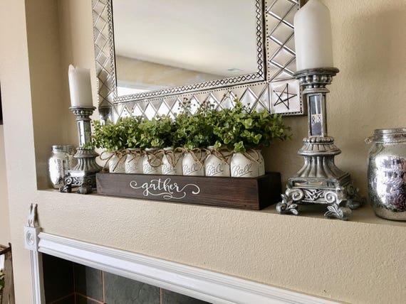 Mason Jars With Greenery Home Decor Farmhouse Mantle Decor Etsy
