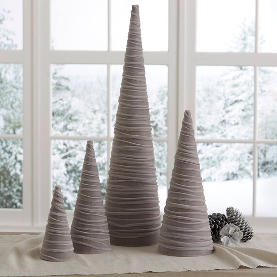 Velvet Trees Set Of 4 Taupe Modern Farmhouse Mantle Decor Etsy