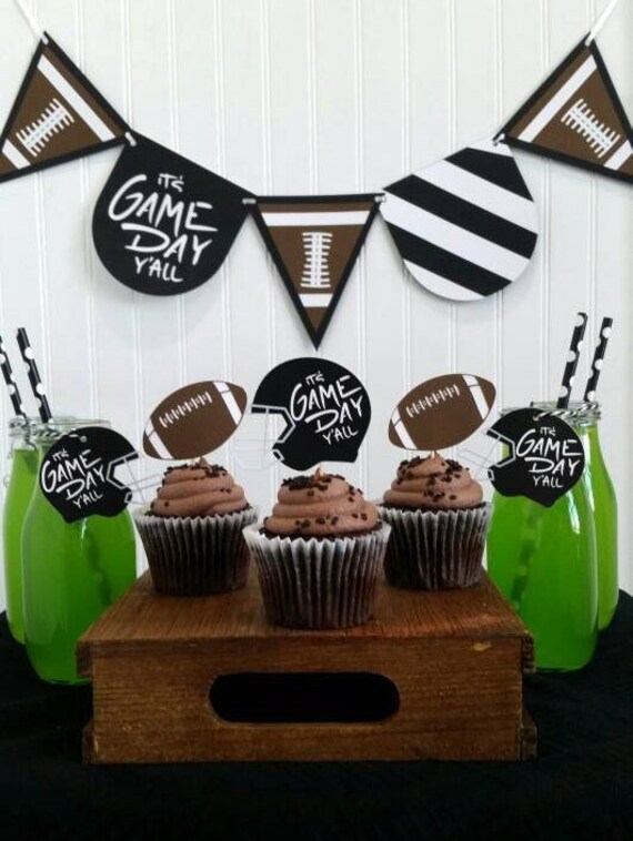 Football Game Day Party Cupcake Toppers Football Birthday Etsy