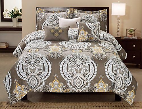 Amazon Com Empire Home 6 Piece White Gray Flower Comforter Set