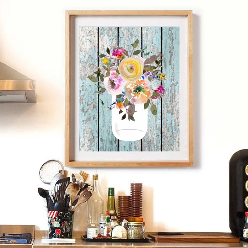Farmhouse Poster Prints Mason Jar Watercolor Art Canvas Painting