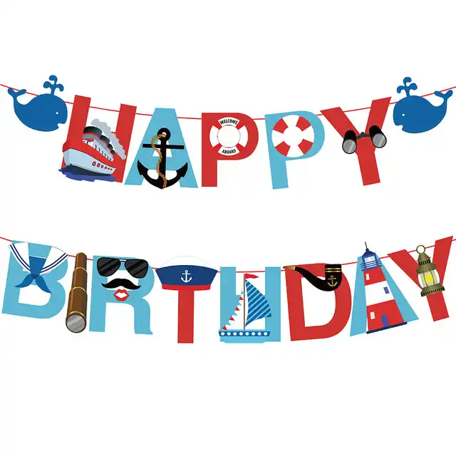 Mediterranean Happy Birthday Nautical Theme Party Banners Anchor