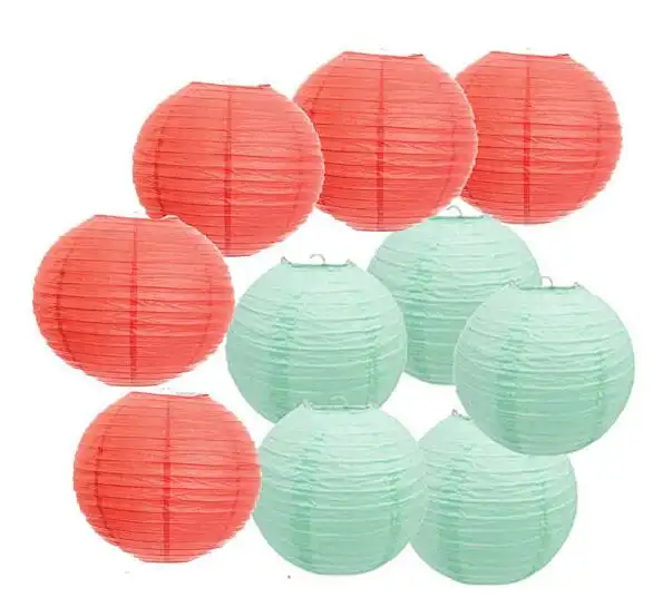 10pcs 12 Inch 30cm Coral Mint Green Chinese Paper Lanterns For