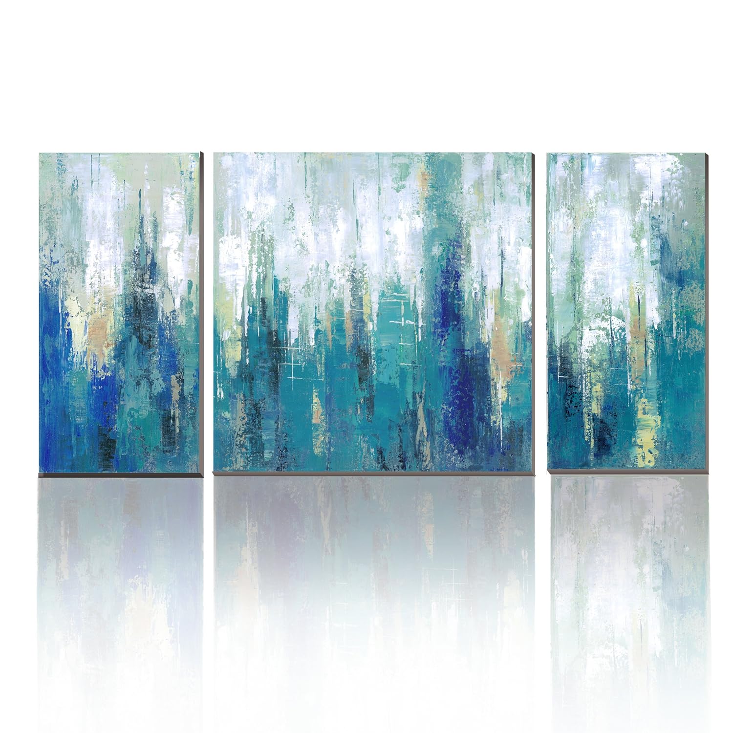 Wesiator Teal Abstract Wall Art Aqua Blue Pictures And Prints