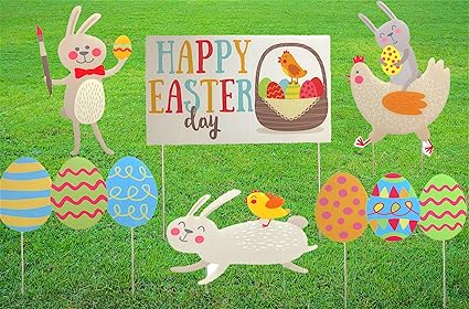 Amazon Com Luckkyy 8 Pieces Easter Yard Signs Decorations