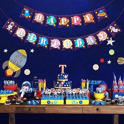 Baby Boy Happy Birthday Decoration Planet Space Party Theme