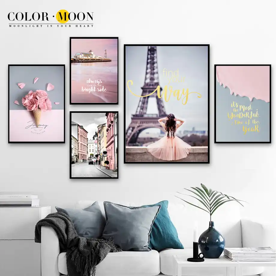 Paris Eiffel Tower Canvas Art Girl Room Decor Canvas Wall Pink