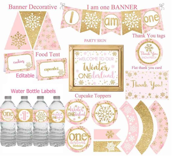 Winter Onederland Party Decorations Pink And Gold Party Etsy