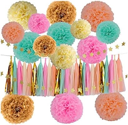 Wedding Party Decorations 42 Pcs Gold Mint Green Pink Peach Cream