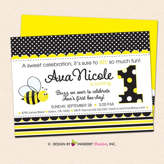 Printable Birthday Invitations Bumble Bee First Party Chevron