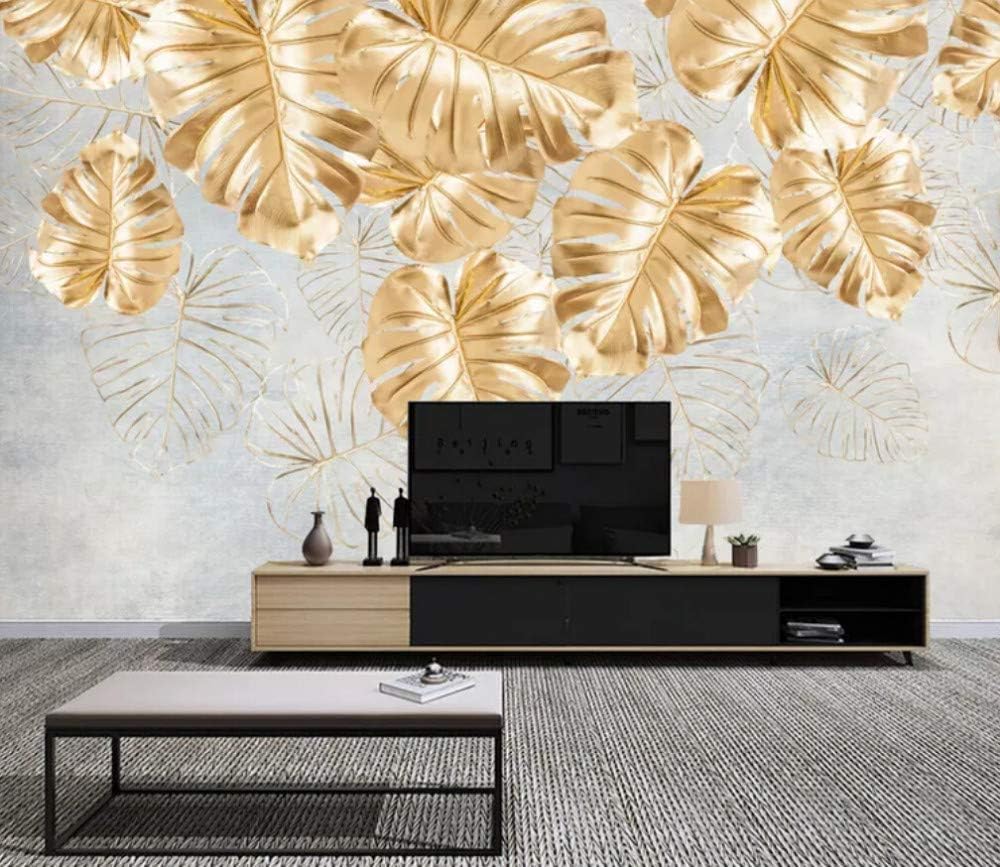 3d Wallpaper Tv Wall Decor Sticker Simple Golden Leaf Plant Modern