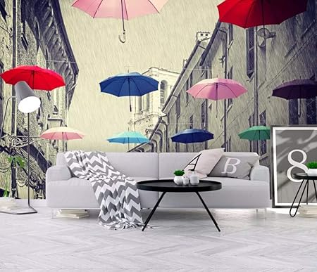 3d Wallpaper Tv Wall Decor Sticker European Street Umbrella Simple