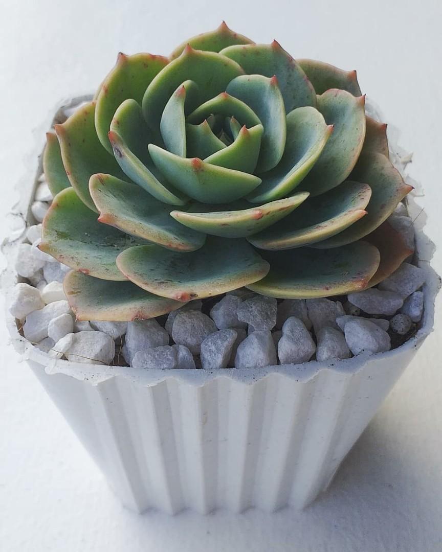 Rose Cabbage Succulents In White Corrugated Pots Room Decor Gift