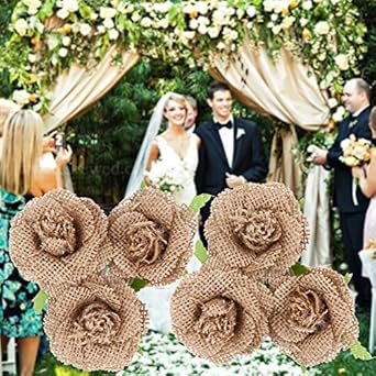 Amazon Com 6pcs Set Natural Jute Hessian Flower Handmade Burlap