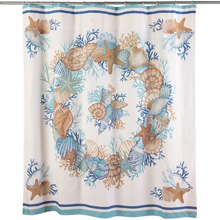 Collections Etc Seashell Shower Curtain Beach Bathroom Decor