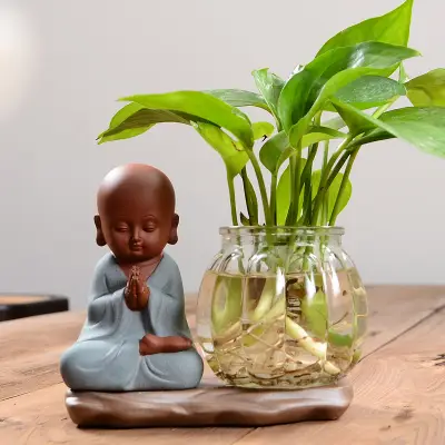 Creative Color Sand Small Monk Shami Glass Vase Decoration Green